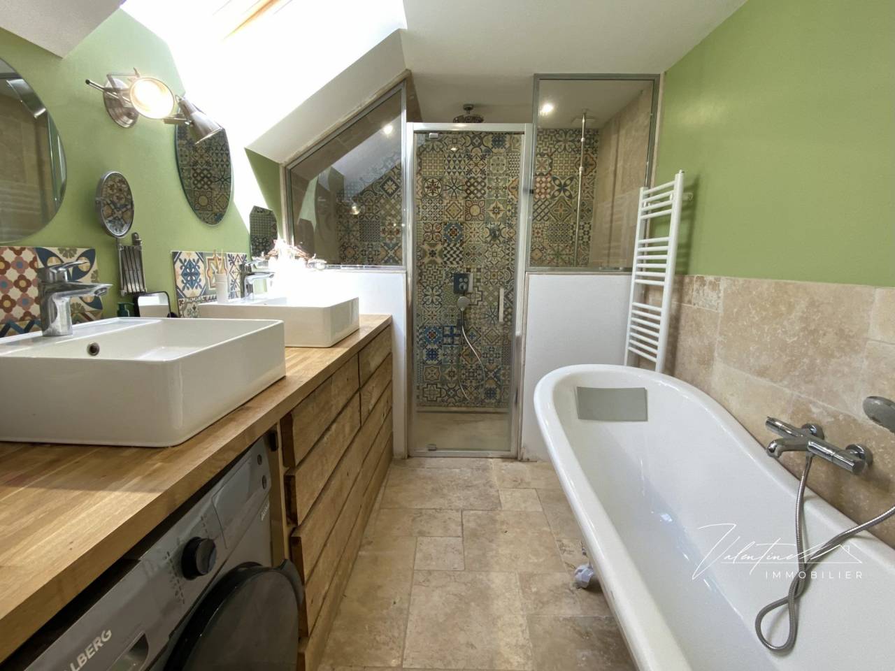 Le rez-de-chaussée offre également une chambre, une salle de bain avec baignoire et douche, ainsi que des toilettes séparées.