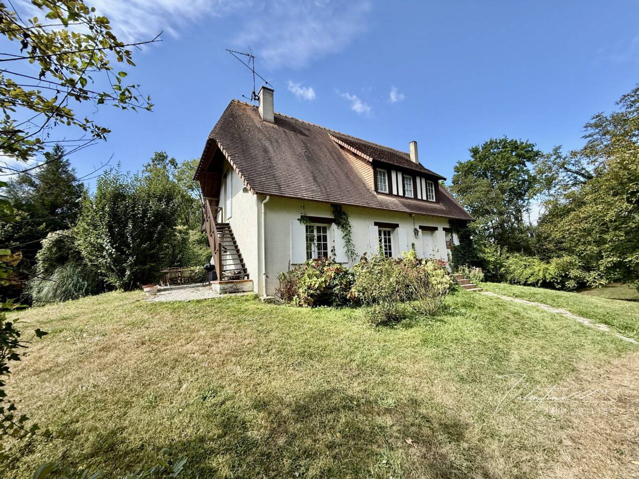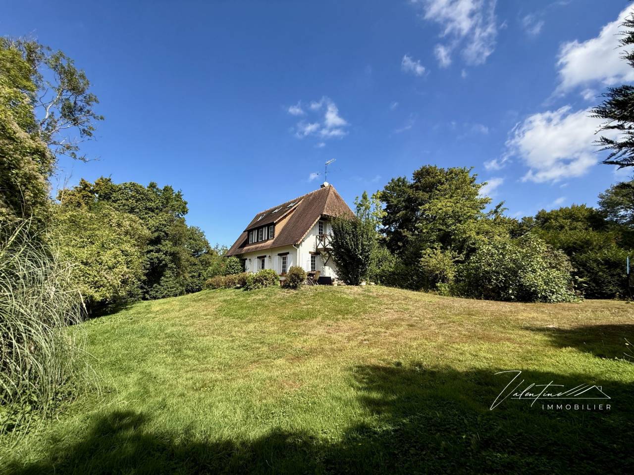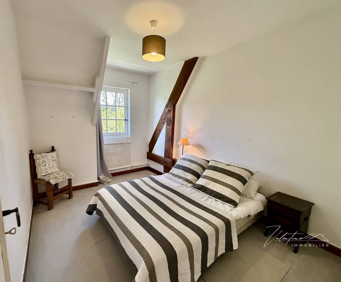 Valentine Immobilier vous invite à découvrir cette ravissante maison familiale située à seulement 6 km de la station balnéaire prisée de Deauville. Idéalement nichée dans un environnement calme et privilégié, cette propriété de charme est édifiée sur un magnifique parc paysagé de 2500 m², bordé par un paisible ruisseau. Le terrain, agrémenté de nombreux arbres fruitiers, offre un cadre de vie exceptionnel.