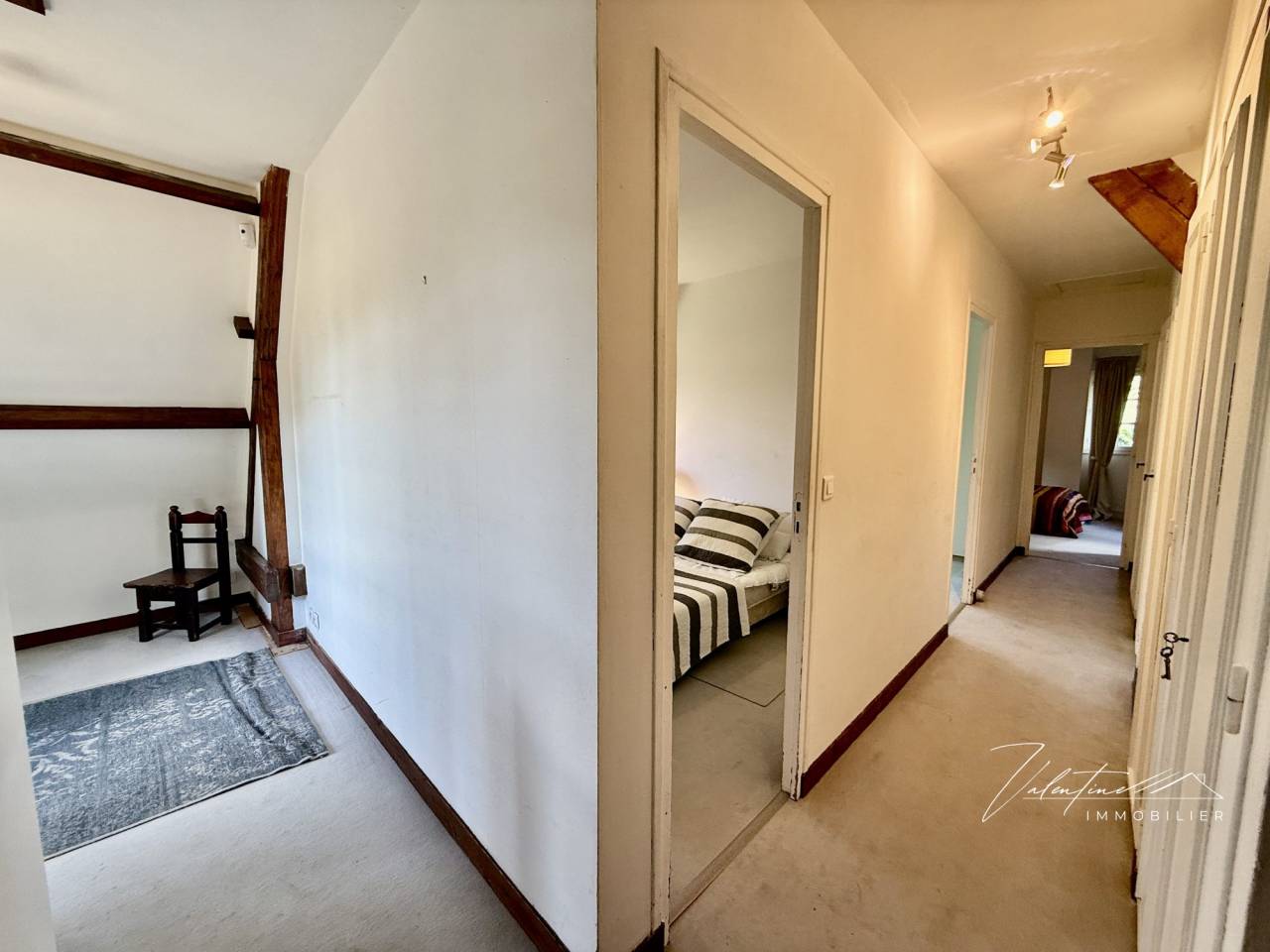 Au premier étage, le palier offre un espace bureau, de nombreux rangements, une suite parentale avec sa salle de bains, deux autres chambres, une salle de douche et des toilettes indépendantes.